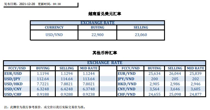 今日汇市 2021-12-20