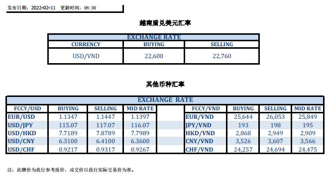 今日汇市 2022-02-11