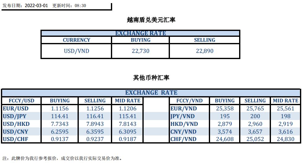 今日汇市 2022-03-01