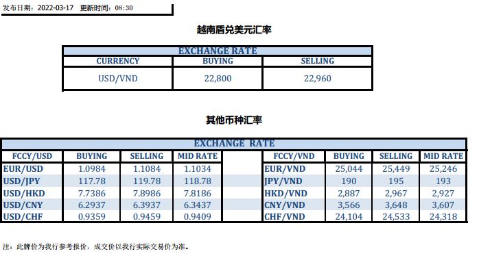 今日汇市 2022-03-17