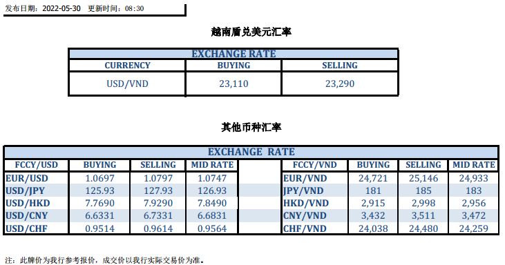 今日汇市 2022-05-30