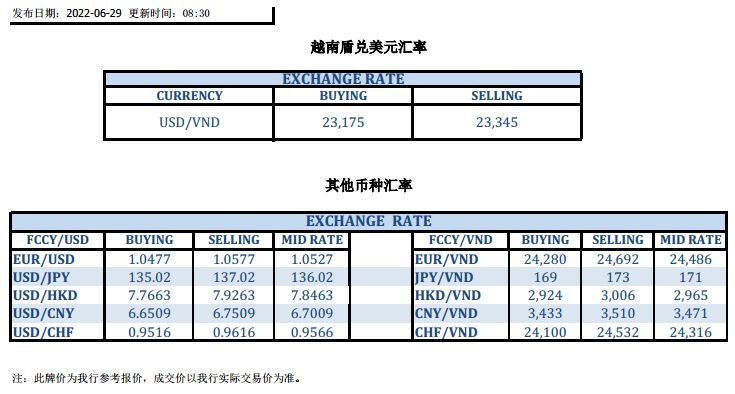 今日汇市 2022-06-29
