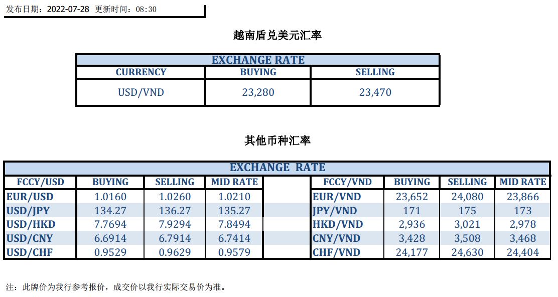 今日汇市 2022-07-28
