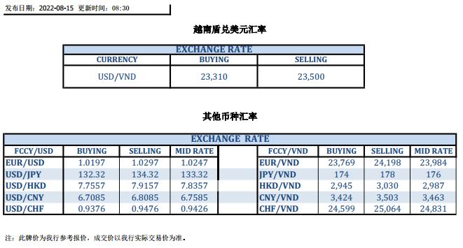 今日汇市 2022-08-15