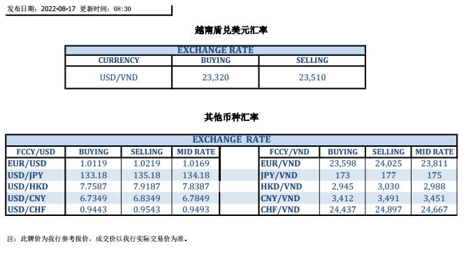 今日汇市 2022-08-17