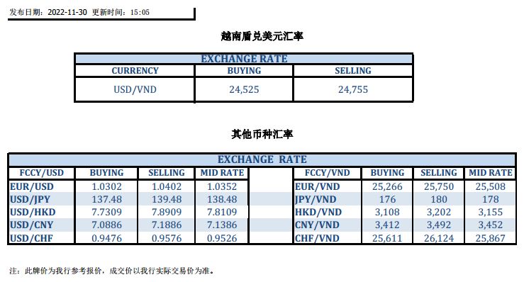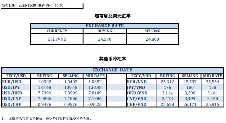 今日汇市 2022-11-30