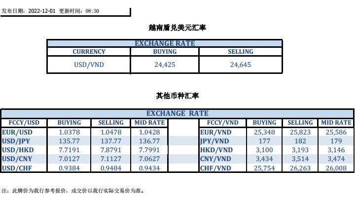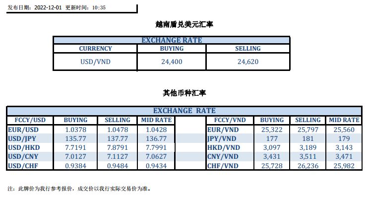 今日汇市 2022-12-01