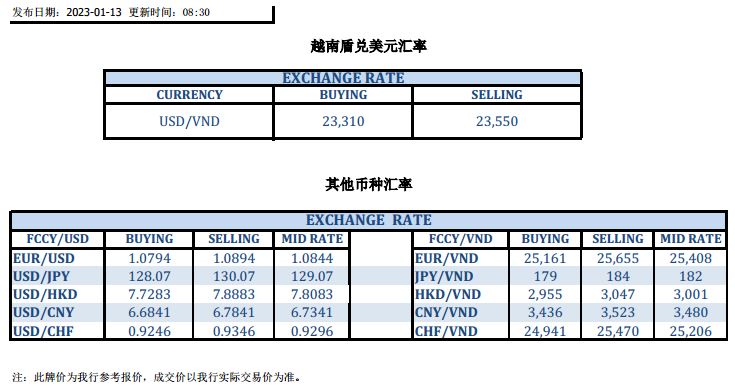 今日汇市 2023-01-13