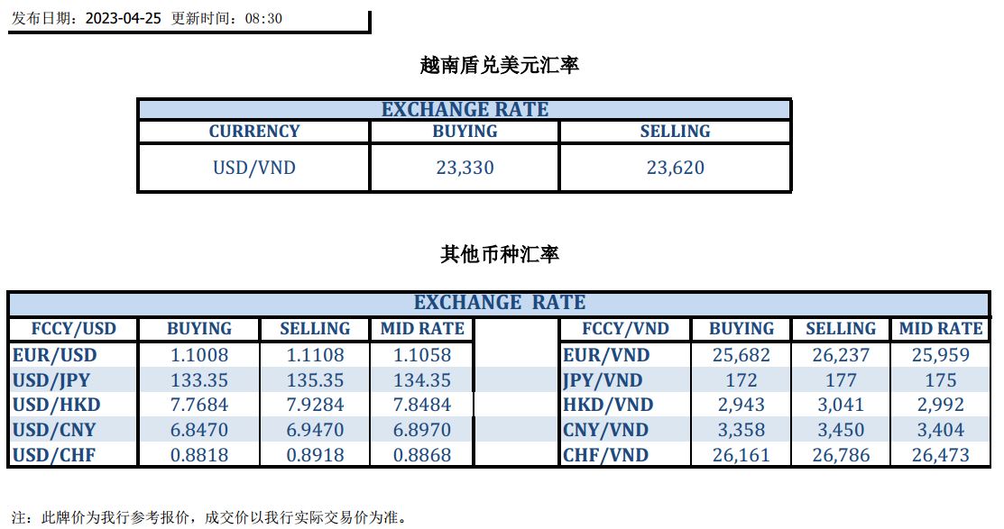 今日汇市 2023-04-25
