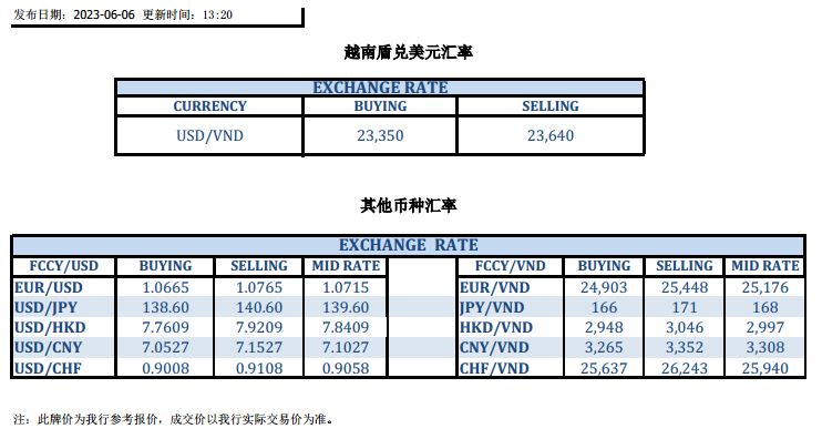 今日汇市 2023-06-06