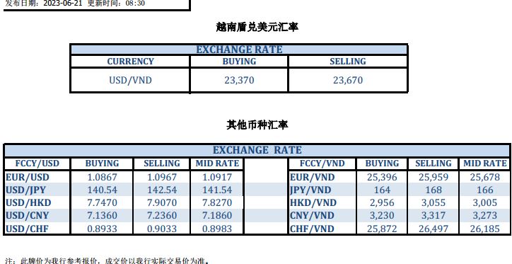 今日汇市 2023-06-21