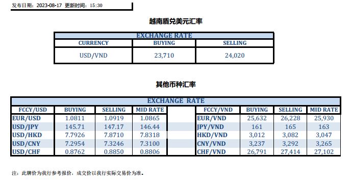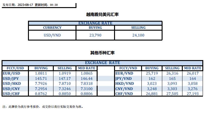 今日汇市 2023-08-17
