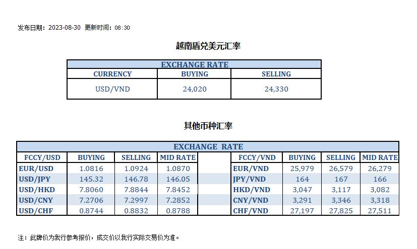 今日汇率 2023-08-30