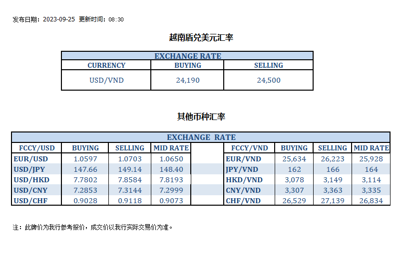 今日汇率 2023-09-25