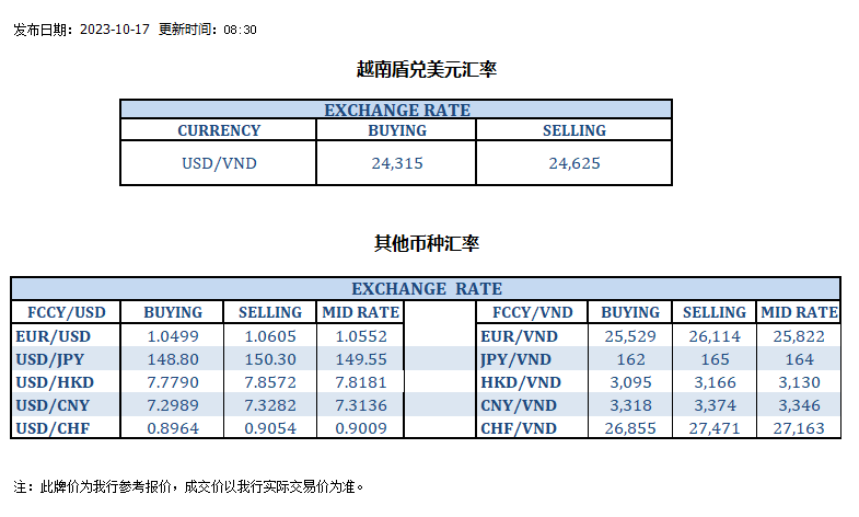 今日汇率 2023-10-17
