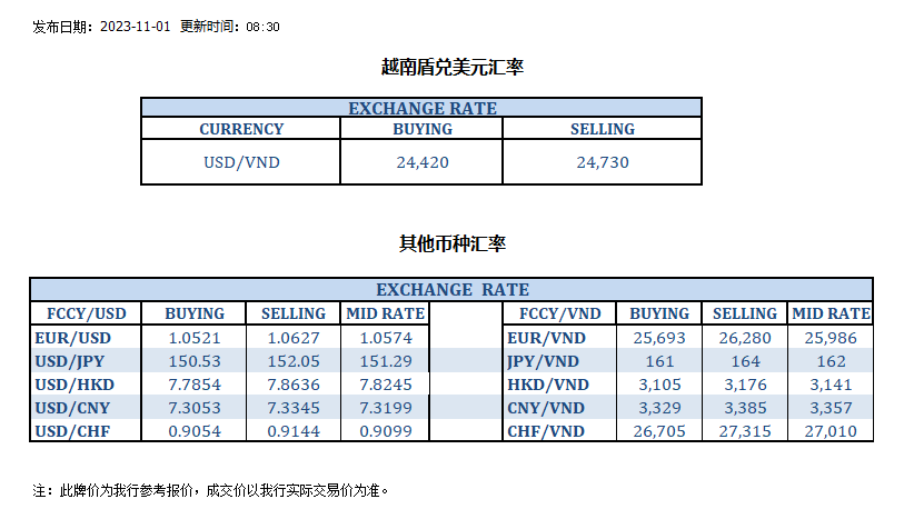 今日汇率 2023-11-01
