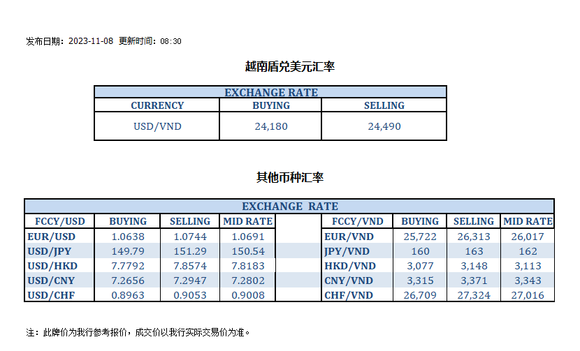 今日汇市 2023-11-08