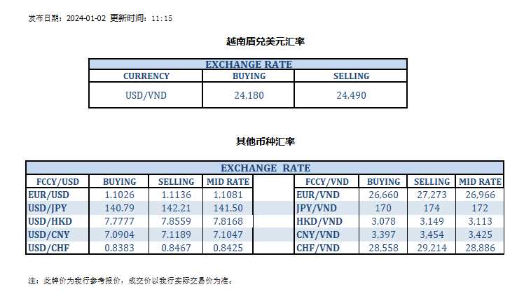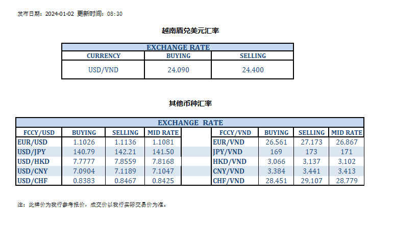 今日汇率 2024-01-02