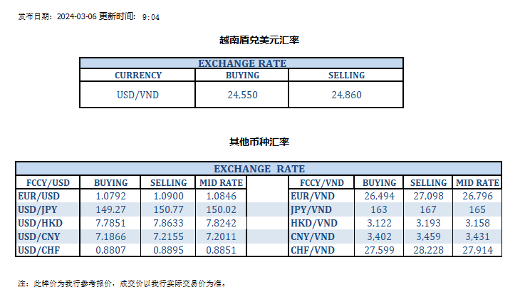 今日汇率 2024-03-06