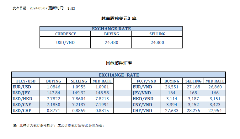 今日汇率 2024-03-07