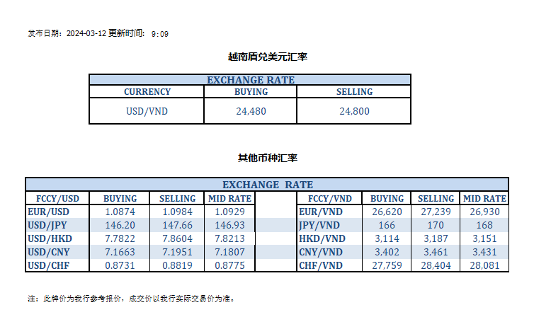今日汇率 2024-03-12