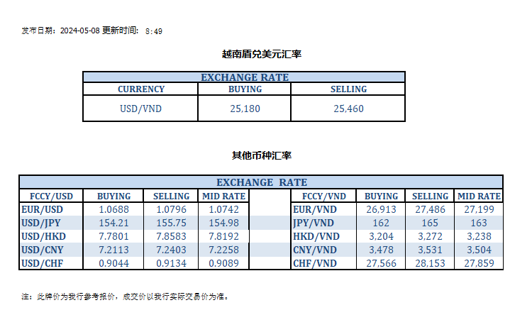 今日汇市 2024-05-08