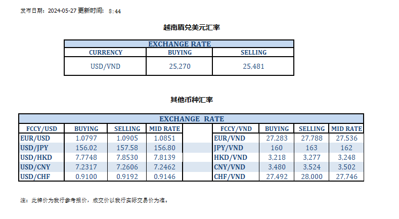 今日汇市 2024-05-27
