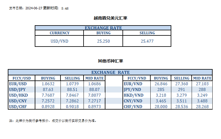 今日汇率 2024-06-27