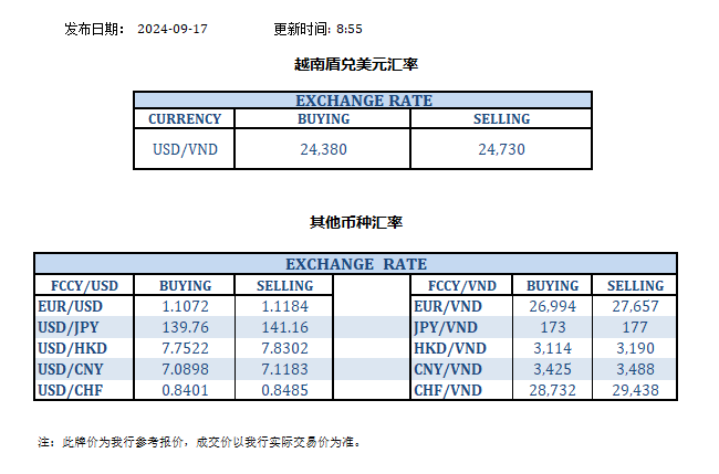 今日汇率 2024-09-17