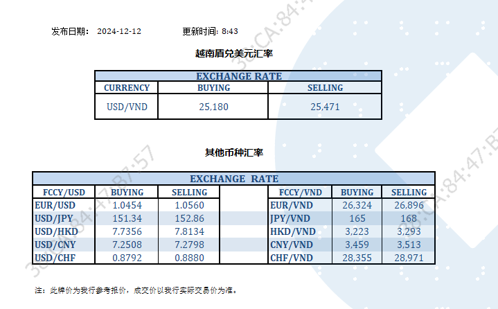 今日汇率 2024-12-12