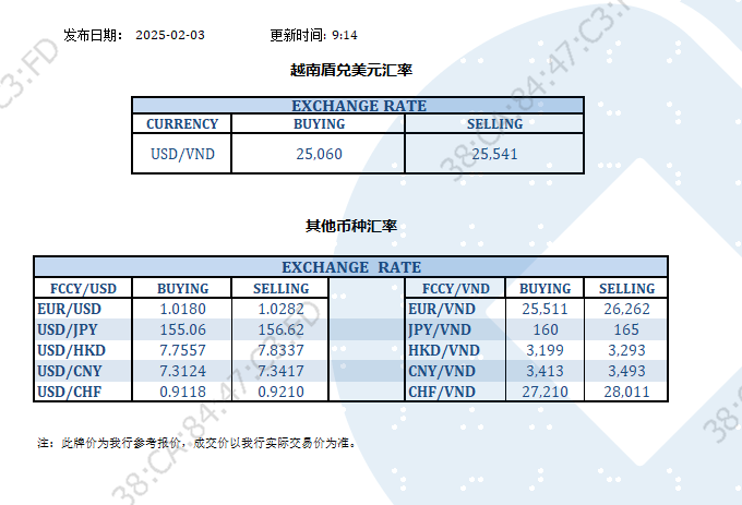 今日汇市 2025-02-03